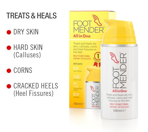 Footmender All in One | Treats and Heals Dry Feet, Hard Skin (calluses), Corns and Cracked Heels (Heel fissures) | Significant Effect After First Treatment | 100ml