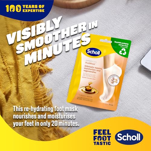 Achieve softer, smoother feet in just 20 minutes with Scholl’s ExpertCare PediMask Foot Mask Socks. Infused with Manuka Honey and Shea Butter, these masks provide intense 24-hour hydration, delivering long-lasting moisture for your feet. Formulated with Hydro’Restor technology, they effectively repair cracked heels and restore the natural moisture of dry skin. The convenient double-layer sock design ensures the cream stays in place, securing around your ankle for optimal results. Simply apply to clean, dry feet, secure the socks, and enjoy silky smooth feet. Perfect for use alone or after using Scholl’s ExpertCare Electronic Foot File.