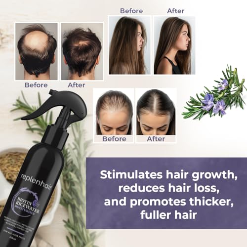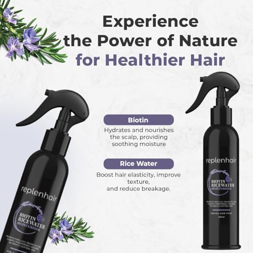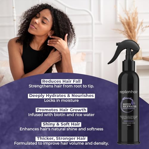 Replenhair Rice Water Biotin Hair Growth Spray – Leave In Conditioner Infused with Biotin Oil & Essential Oil for Hair Growth, Reduces Hair Fall, Dandruff & Promotes Thicker Hair – 250ml