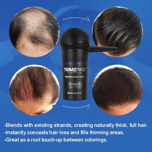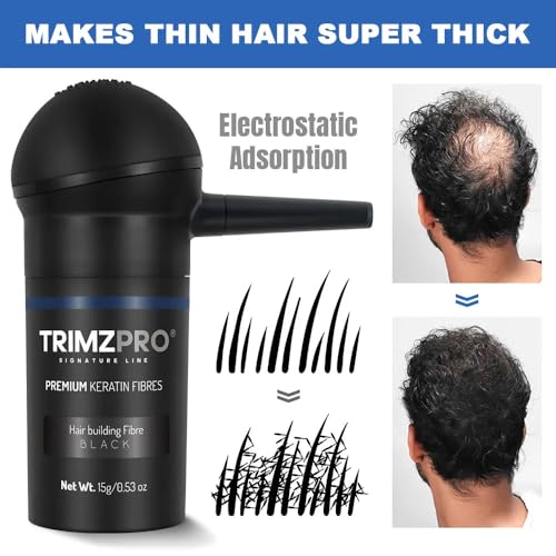 Trimzpro Signature Keratin Hair Fibres 14g – 10 Shades | Instant Thickening & Concealing Powder | Lock-In Tech for Natural Look & Durability | Hair Volumizer for Men & Women, BLACK