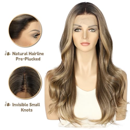 Sapphirewigs Brown Lace Front Wig 13×4 Synthetic Wigs Body Wave Brown Lace Front Hair Pre-plucked Daily Wear Party Christmas Date 22 inch