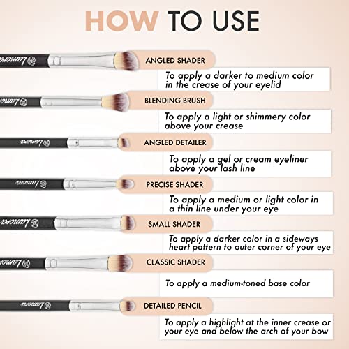 Make Up Eye Brush Set – Eyeshadow Eyeliner Blending Crease Kit – Best Choice 7 Piece Essentials – Pencil, Shader, Tapered, Definer – Vegan Synthetic Bristles That Last Longer & Apply Better Makeup