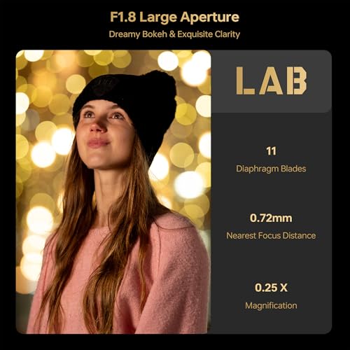 F1.8 Large Aperture: Boasting a bright f/1.8 maximum aperture, superior optical design greatly reduces the dispersion of blurred edges and creates soft, delicate, and impeccable blurred performance outside the sharp and clear focal plane.