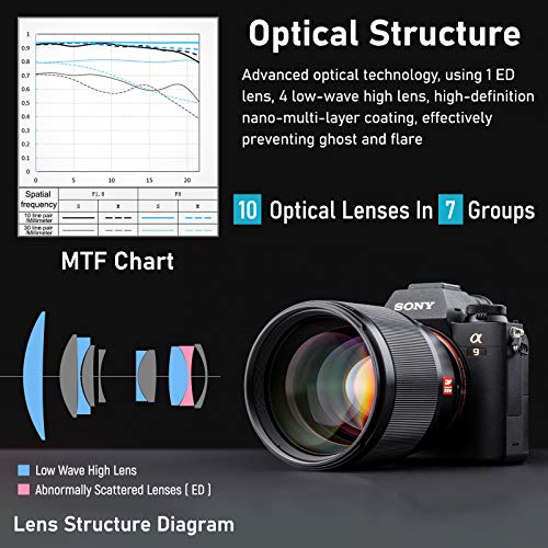 VILTROX 85mm F1.8 E Full Frame Lens STM Auto Focus Fixed Focus Support Auto iris/EXIF Prime Lens for Sony E Mount Camera A9 A7RIII A7RII A7M3 A7M2 A7SII A7III A6500 A6300 A6400 A6000 A5100