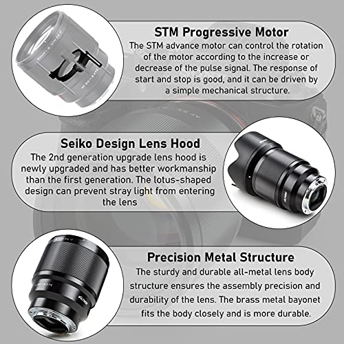 📷【Compact and Durable】Compact design, Precision metal structure, Only 484g. Durable and easy to carry, and supports EXIF information transmission. The metal exterior and metal lens hood give a sense of premium quality and robustness. An integrated micro-USB port can be used to update the lens’s firmware.