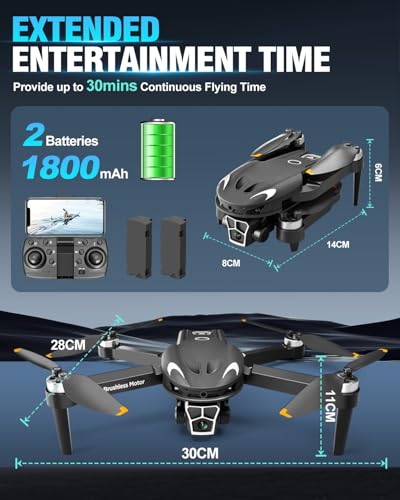 Foldable & Portable- This kids drone with camera folds down to a compact size of 30x28x11 cm, making it perfect to take on the go. It even comes with a handy storage case for easy carrying and safekeeping. The remote control drone includes two 1800mAh batteries, offering a flight time of 15-30 minutes. Great fun for both kids and adults alike! An ideal Christmas gift for men, women, boys, and girls.