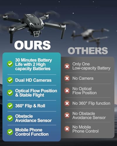 Wonderful Flight Experience- The E-SMARTER drone is designed with user-friendly features and plenty of versatility. With 3-speed modes, 360° flips, one-key take-off/landing, smart obstacle avoidance, and optical flow positioning, it’s easy to control. Plus, features like trajectory flight, smart follow, and gesture-controlled photo/video capture add endless fun to every flight.