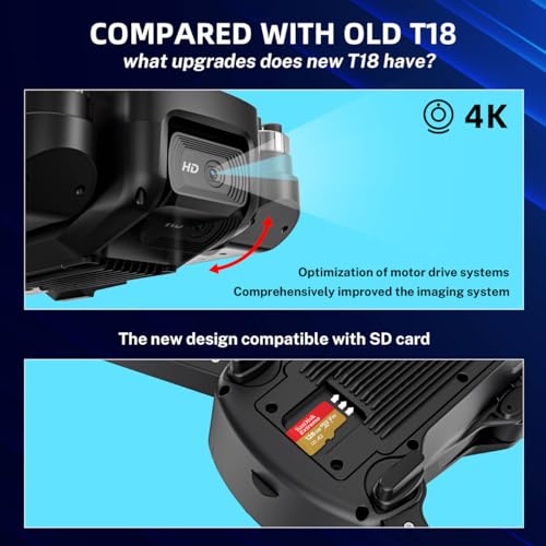【Remote ESC Camera + Optical Flow positioning 】Equipped with 4K camera that can be electric adjusted by remote control or phone, T18 upgraded camera drone for adults can catch wonderful moment from a bird’s-eye perspective. Optical Flow positioning makes your video more stable