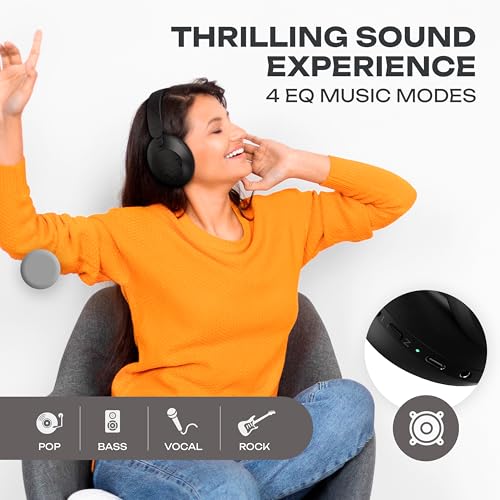 PowerLocus Wireless Headphones Over Ear, Bluetooth Headphones, 4 EQ Modes, 70H Playtime, Hi-Fi Stereo, ENC with Microphone, Soft Memory Foam Earmuffs, Foldable for iPhone/PC/Travel/TV (Black)