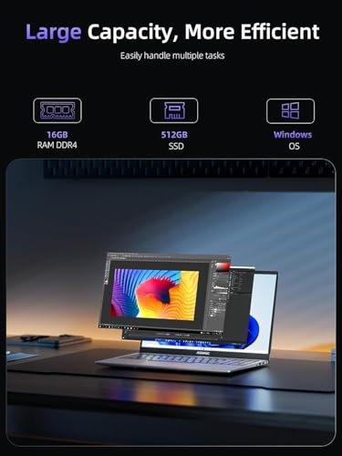 【16GB RAM & 512GB ROM】The TX15 Laptop comes with 16GB of high-speed RAM, this laptop is able to handle the demands of multitasking with ease. Whether you’re running multiple apps, browser tabs, or video editing at the same time, it stays smooth and unobstructed, boosting productivity. Storage comes with a 512GB SSD, which is huge enough to fulfill all your needs while delivering blazing fast data read and write speeds. This means faster system startup, app loading times, and shorter file transfer waits.