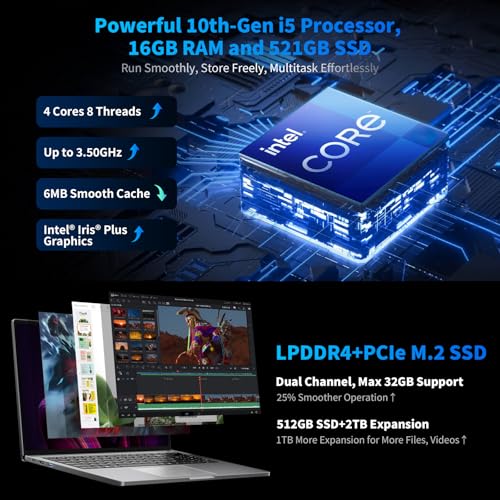 POWERFUL PERFORMANCE FOR MULTITASKING & 512GB SSD:Windows laptop equipped with the 10th generation Intel Core i5-1030NG7 processor, it has a powerful configuration of 4 cores and 8 threads, and the highest turbo frequency can reach 3.50GHz. Equipped with 16GB DDR4 RAM and 512GB SSD /2TB, it can easily handle it without any delay, whether it is opening and editing Word, Excel and PowerPoint at the same time, or running complex programs. Compared with processors with lower performance, it can save you a lot of time, making multitasking smooth and efficient