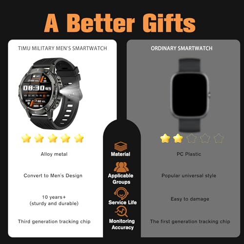 【Military-Grade Quality and 30-Day Battery Life】The smart watch for men features a casing made of aerospace-grade aluminum alloy, successfully passing 12 military-grade tests, ensuring durability, water resistance, dust resistance, and the ability to withstand all extreme environments. The android smart watch is equipped with a high-density lithium-ion battery, providing you with 30 days of standby time, 7 days of daily use, and only 1.5 hours of charging.