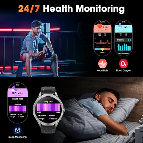 【Bluetooth Calling & Message Notifications&Voice Assistant】Mens smart watch is equipped with the Bluetooth 5.0,which ensures faster and more stable connections.It features a 60-decibel speaker and a noise-cancelling microphone to ensure clarity during calls. Once paired with your smartphone, you can easily answer, make, and end calls, as well as view message notifications (SMS, Facebook, WhatsApp, Tiktoketc.). Use your voice to give instructions and the voice assistant will do the rest.