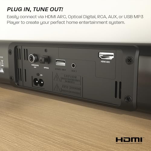 AZATOM 2.1 Soundbar with Subwoofer, Bluetooth, 120 Watts for 4K TV, UHDTV, Stereo Surround Sound TV speaker, HDMI ARC, Optical, AUX, Remote control, Wall Mountable kit included (Studio Premier 32”)