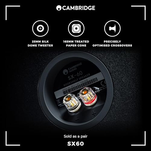 Cambridge Audio SX60 – Pair of Passive Wired Standmount Speakers for HiFi or Home Cinema System – Optimised for Smooth and Even Frequency Response – Matte Black