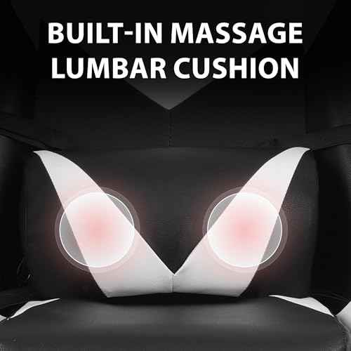 ERGONOMIC DESIGN WITH MASSAGE- Contoured backrest and adjustable lumbar support promote proper spinal alignment and alleviate back pain. Wider and thicker backrest with latex headrest and lumbar pillow design to better fit your body curve. The built-in massage function adds a layer of relaxation, which is ideal for long gaming sessions or extended periods of work