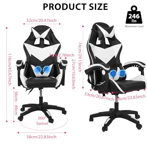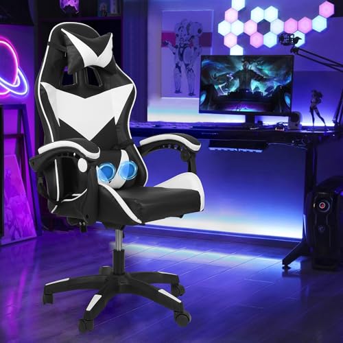 COZYBRITE Gaming Chair Office Desk Computer Chairs Swivel with Massage Headrest Back Support Reclining Ergonomic Design Faux Leather (Black+White)