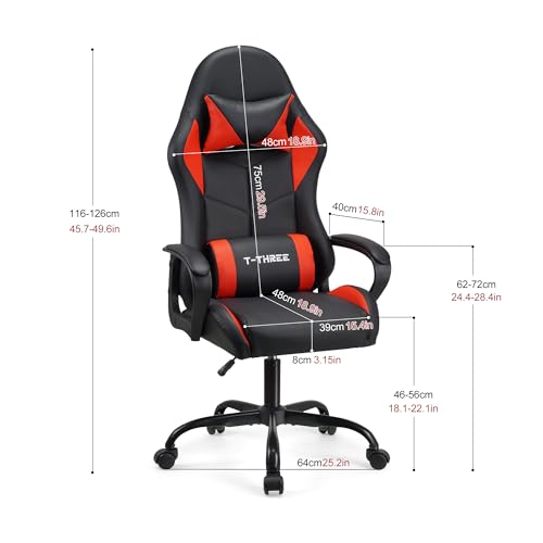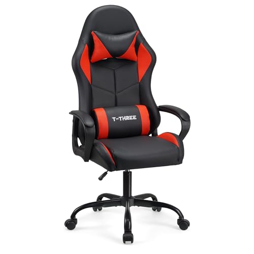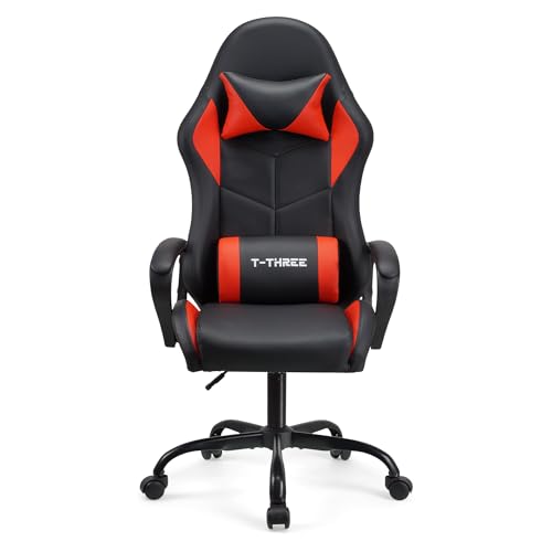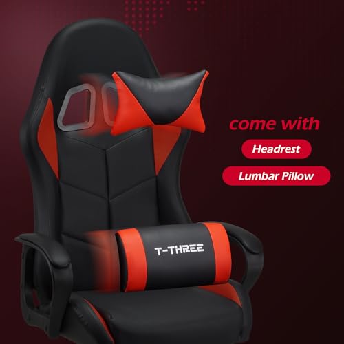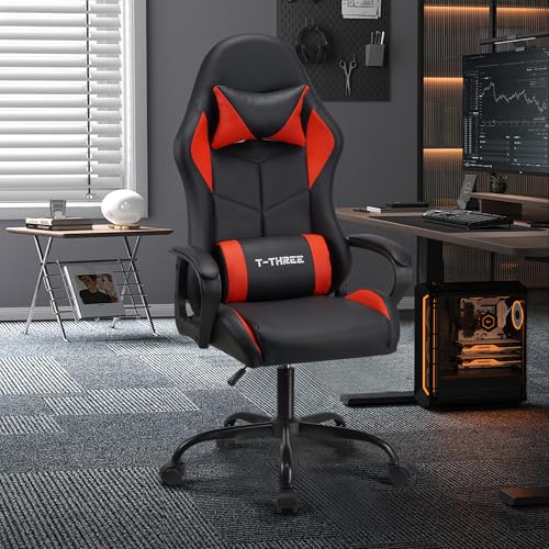 T-THREE.High-back ergonomic gaming chair, computer, office, desk chair, swivel seat, racing-style seat with 150kg weight capacity.(Red)