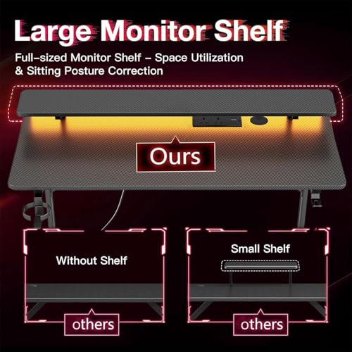 Full-Large Monitor Stand: Ergonomically designed, this desk is ideal for gamers or professionals who use multiple monitors. The monitor stand elevates your line of sight, promoting proper posture and supporting cervical and spinal health during long work or gaming sessions. With ample legroom and a spacious design, it comfortably accommodates a standard-sized chair while providing plenty of space underneath