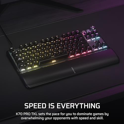 Speed is Everything: It’s all about speed. With Rapid Trigger, ultra-fast polling rates, and per-key adjustable switches, K70 PRO TKL removes every barrier that comes between you and gaming greatness.
