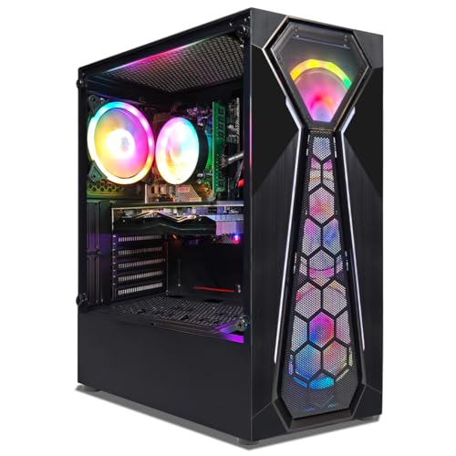 Gaming desktop with stylish design: four RGB fans add a touch of style to your gaming setup while keeping the system cool.