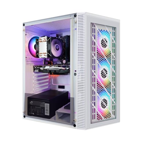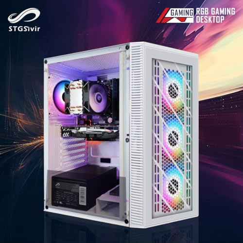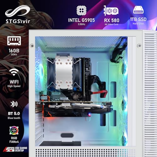 STGsivir White Gaming PC Desktop Computer Tower, RX 580 8G, Intel 10th Gen G5905 3.5G, 16GB DDR4, 1TB SSD, 600M WiFi, BT 5.0, White RGB Gaming Case, Windows 11