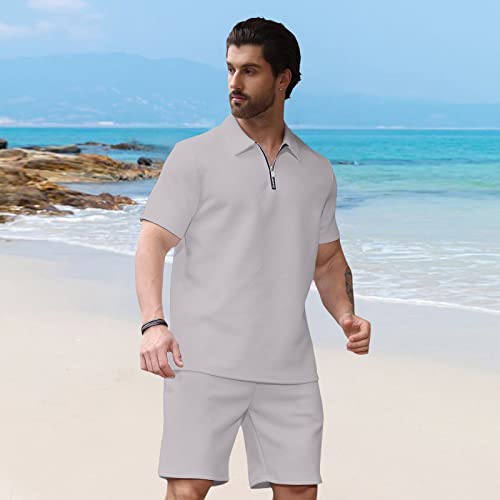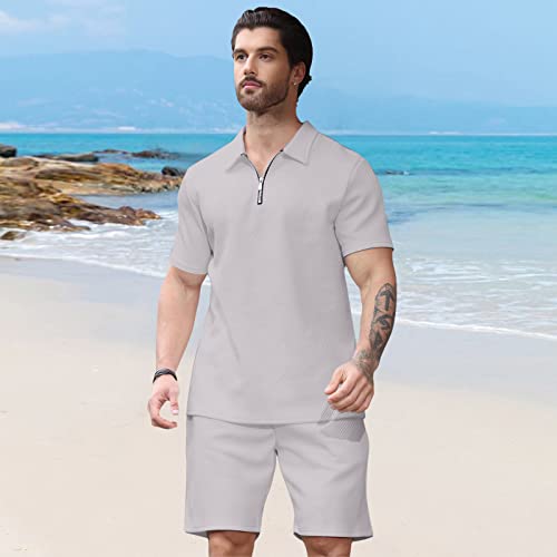 Hoefirm Men’s Tracksuit Polo Short Sleeve Suit Set Zip Joggers Gym Top Casual Running Sport Sweat Activewear 2 Piece Suit Pants
