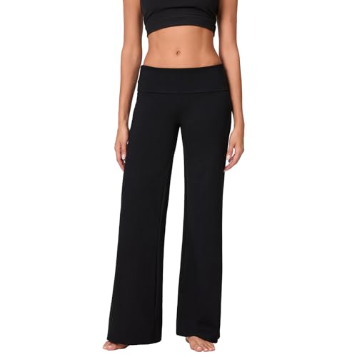 HZPHQY Women Wide Leg Sweatpants Yoga Foldover Waist Pants Straight Baggy Leggings Joggers Tracksuit Bottoms Ladies Activewear Trousers