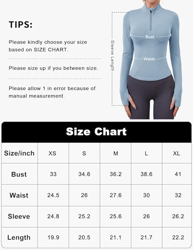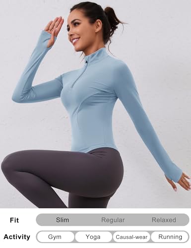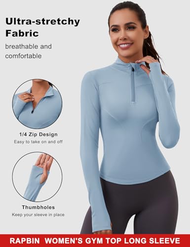 Rapbin Women’s Gym Tops Long Sleeve Sports T-Shirt Workout Running Hiking Top for Ladies 1/4 Zip Sweatshirt with Thumb Holes Lightweight Quick Dry Slim Fit Tee Shirts