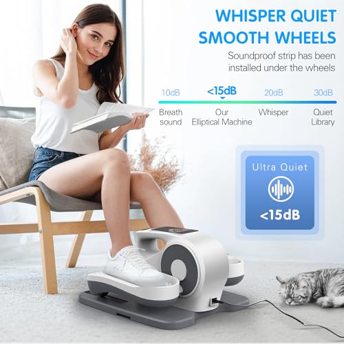 Healfith Elliptical Machines Fitness,Electric Pedal Exerciser,Under Desk Bike With Display Screen And Remote Control,Mini Elliptical Cross Trainer,Leg Exerciser Sitting Down With 2 Silent Strip
