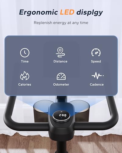 MERACH Exercise Bike with LCD Display, Stationary Bike with Exclusive App for Customized Exercise Plans, Quiet Indoor Cycling Bike Exercise Equipment for Home Gym Use, 300lbs Weight Capacity