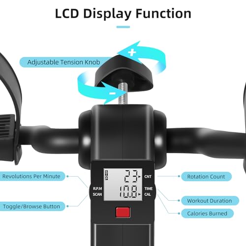 Himaly Mini Exercise Bike Portable Pedal Exerciser Gym Fitness Leg Arm Training Adjustable Resistance with LCD Display for Women and Men