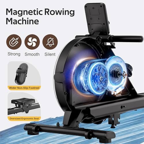 LABGREY Rowing Machine for Home Gym, Magnetic Bluetooth Rower, APP Compatible, Dual Slide Rails, LCD Display, 350LB Capacity, Ideal for Home Cardio Fitness Training