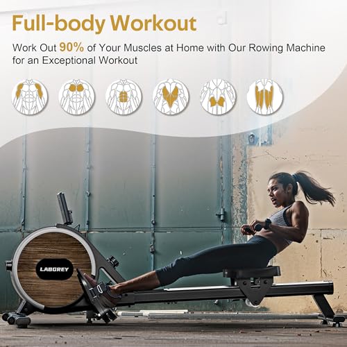 [Smooth Quiet Rower]:LABGREY Rower features a triple silent system: dual-ring magnetic control, silky pulley, and silent belt, ensuring a noiseless rowing experience. ensuring exercise sessions are incredibly quiet, generating less than 20 decibels. Perfect for home or office use without disturbing others.