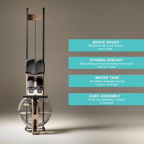 UNIQUE AND SPACE-SAVING DESIGN: Vertically, the WaterRower Driftwood takes up only as much space as a chair and can be easily placed upright. With the centre of gravity on the tank, the rail end can be lifted in a short step, while the water remains securely in the tank.