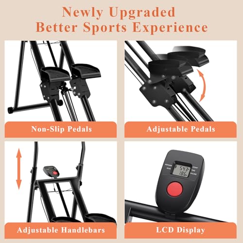 Stair Stepper Climber Stairmaster for Home Gym Exercise, Vertical Climber Machine for Full-Body Workout, Compact Folding Stepper Machine with Extended Step Range, Adjustable Handlebar & Pedals