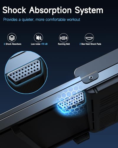 Shock-Absorbing & Anti-Slip Design – Treadmill uses a 5-layer anti-slip running belt, basic shock absorbers, and honeycomb cushioning. These elements aim to support the joints and maintain surface grip during use
