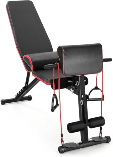 [Versatile Training]: In addition to traditional dumbbell exercises, this bench comes with a pair of ropes and a spring for added workout variety. Fully train your upper and lower body with ease.