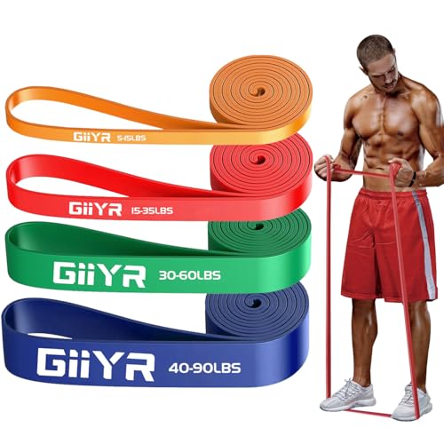 Giiyr Resistance Bands Set for Men & Women – 4 Levels Exercise Band with Door Anchor, Pull Up Bands for Strength Training, Stretching, Powerlifting, Home Workouts, and CrossFit