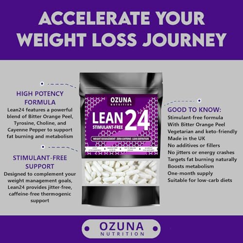 STIMULANT-FREE WEIGHT MANAGEMENT SUPPLEMENT: Lean24 is carefully formulated with premium, caffeine-free ingredients to support your weight management journey. These easy-to-swallow capsules are ideal for anyone seeking a non-stimulant option to complement their diet and fitness routine, making them a versatile addition to any supplement plan.