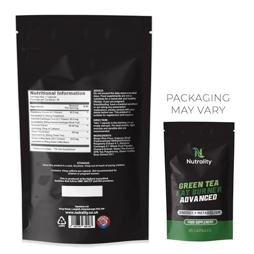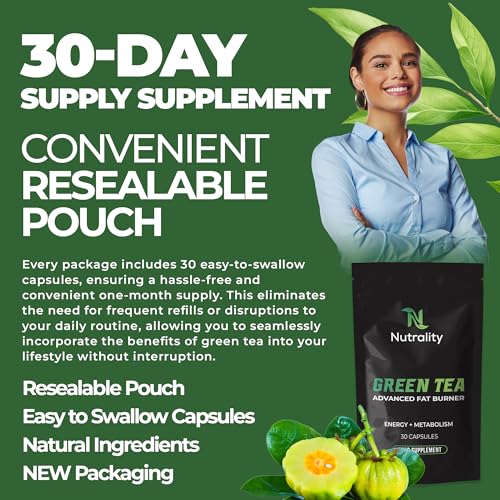Nutrality Green Tea Advanced Fat Burner Supplement | for Men & Women | Weight Management, Metabolism Boost & Appetite Suppressant | 30 Vegan Capsules