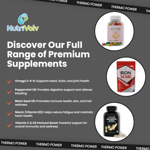 𝗛𝗶𝗴𝗵 𝗘𝗻𝗲𝗿𝗴𝘆 & 𝗠𝗲𝘁𝗮𝗯𝗼𝗹𝗶𝘀𝗺 𝗕𝗼𝗼𝘀𝘁𝗲𝗿: Nutrivolv fat burner pills feature natural ingredients that help to boost your metabolism by increasing thermogenesis – meaning you burn more calories throughout the day and support weight loss.