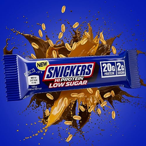 Snickers – Milk Chocolate Low Sugar Protein Bars | 12 x 57g Pack, Only 2g of Sugar per bar, Hi Protein Energy Snack, 20g Protein