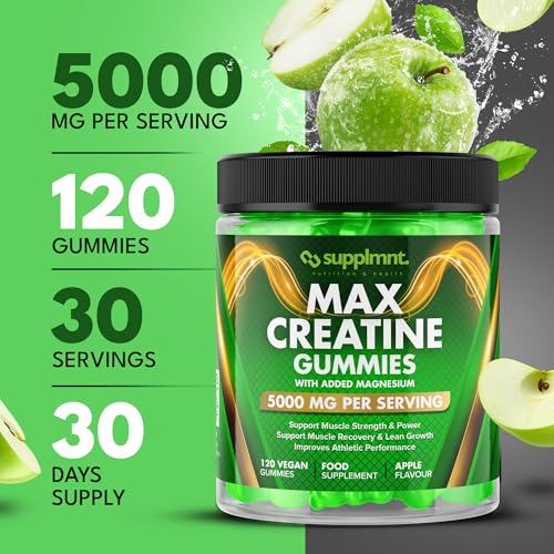 Creatine 120 Gummies Max 5000mg for Men and Women Creatine Monohydrate with Added Magnesium – Chewable Gummies, Apple Flavour (1 Month Supply)