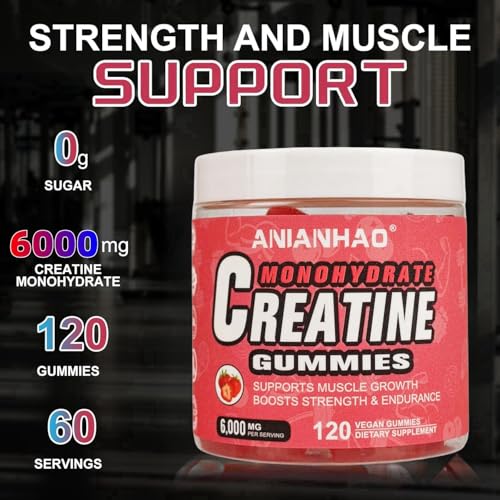 Fuller and Developed Muscles: Our gummies with creatine monohydrate may help support muscle growth; take three creatine monohydrate flavored gummies thirty minutes before or after workout