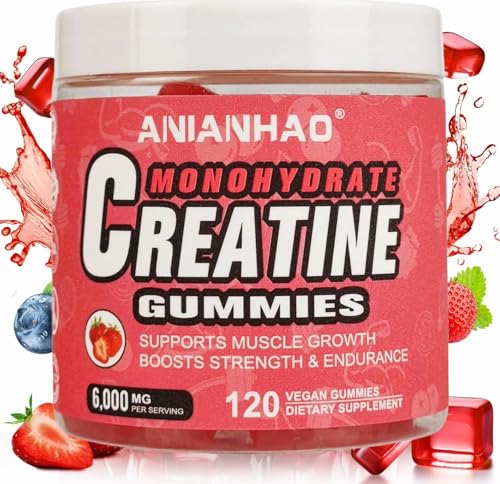 Creatine Monohydrate Gummies 6000mg – Strawberry Flavour Chewables – Muscle Growth, Energy, Brain Function & Recovery – Pre & Post Workout Supplement – Creatine Monohydrate Strawberry Gummies