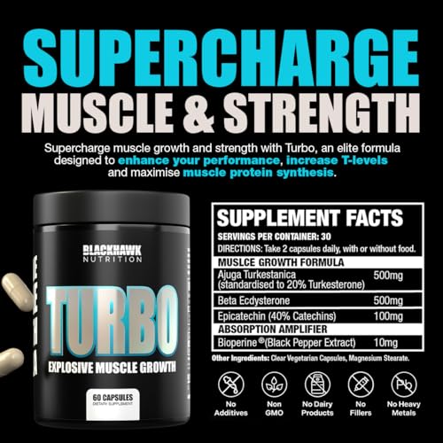 Turbo Muscle Support Formula with Turkesterone & Beta Ecdysterone – Ideal Muscle Mass Synthesis to Improve Strength & Muscle Development – 60 Capsules Pack