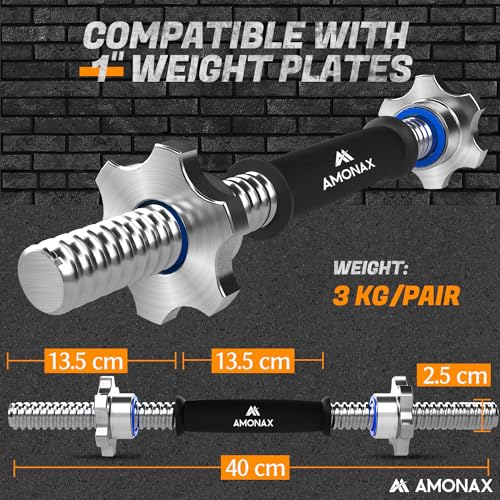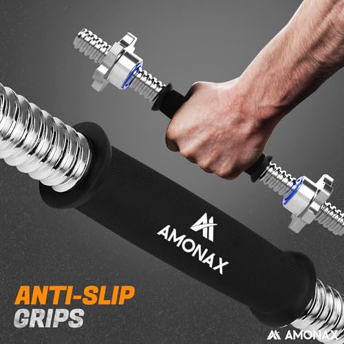 [Robust and Durable Design] Our Amonax dumbbell bar is crafted from high-quality cast iron, ensuring longevity and resilience for all types of weightlifting routines, providing a solid and reliable grip.