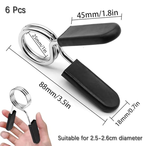 DHinkyoung 6 Pcs Spring Collar Clips, Dumbbell Barbell Clamps, Exercise Collars Barbell Clip Clamps for Weightlifting Bars, Strength Training, Gym Equipments