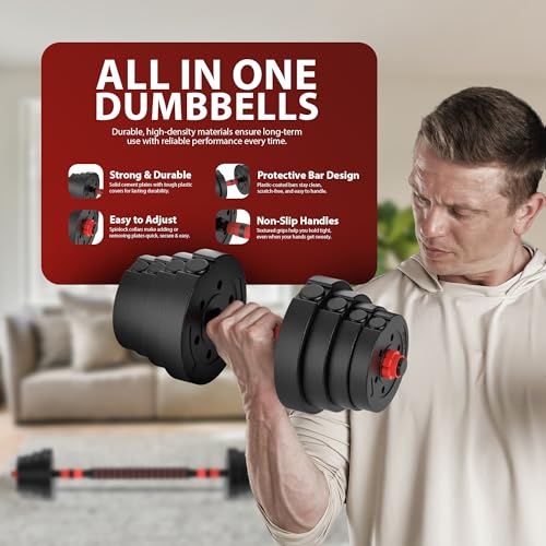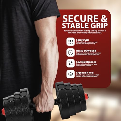 INNOVATIVE & EASY TO USE DESIGN – Say goodbye to cluttered workout spaces! Our adjustable dumbbells feature a unique, easy-to-use selection system allowing you to adjust the weight quickly. With a range from light to heavy, they replace the need for multiple sets of traditional dumbbells, making them perfect for small spaces.